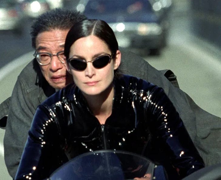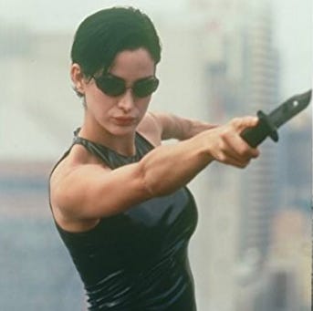 In any case, I’ve got an Airbnb to go to, and an appointment early tomorrow morning, so I need to take a sleeping pill, and it’s a really good thing I don’t have wifi, or else I would be up all night curating pictures of Trinity from the Matrix to insert into this article, and…