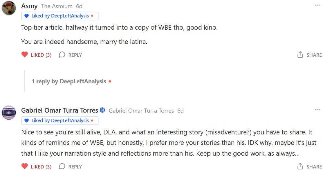 If it wasn’t for him, I would not have persisted in double-texting an anonymous faceless substack account, not just once, or twice, but three times.