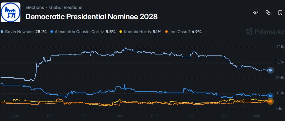 Ideally, however, Democrats would be able to run purely on culture war issues. In 2008, Obama’s victory came about as a result of the 2007 recession and the wars in Iraq and Afghanistan. In 2028, high gas prices and a War in Iran could recreate those conditions.