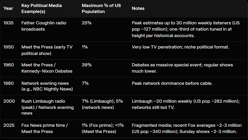 With the decline of the “fairness doctrine” and the rise of conservative radio and Fox News, political opinion became fragmented on partisan lines. This was accelerated by the open internet and social media, resulting in Bernie and Trump.