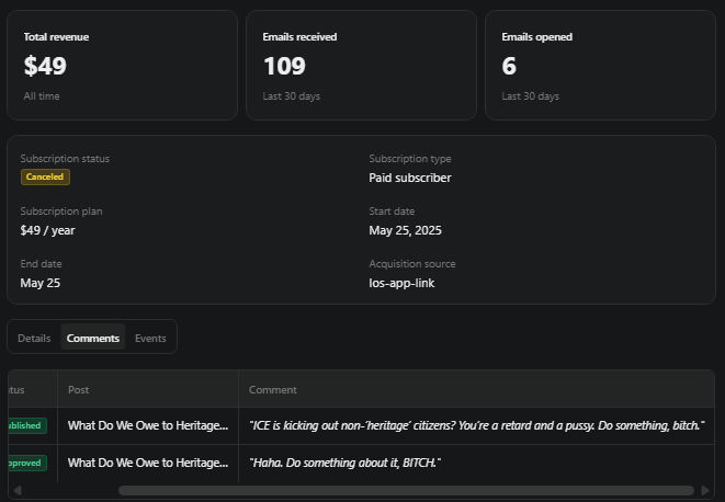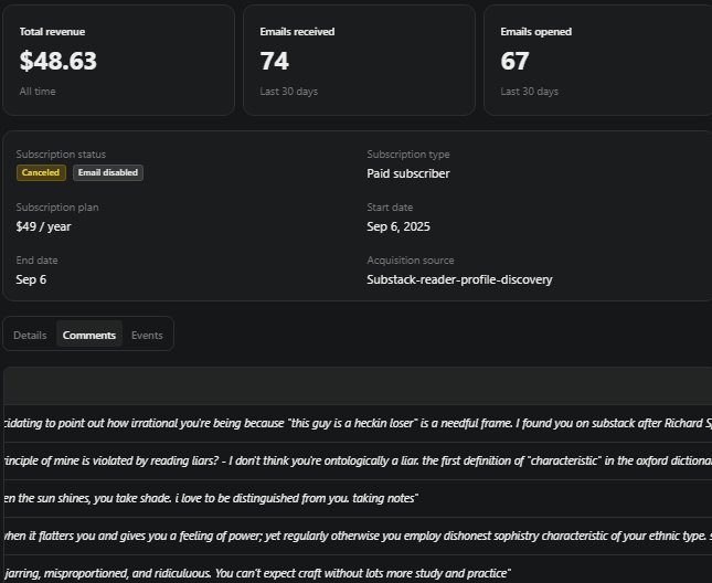 This is 1% of my paid subscribers, but they are the squeaky wheels.