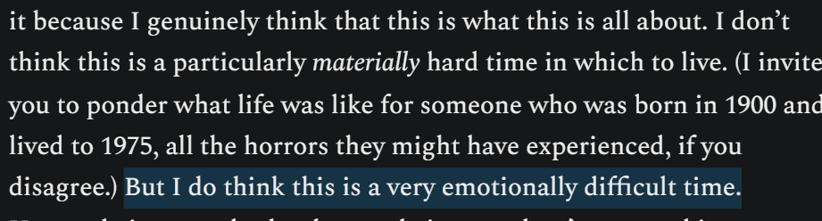 There are lots of ways in which work has gotten more pleasant. We lift less, and engage in less physically arduous labor; we have air conditioning; we have phones and music; we have the ability to skip commuting and call into the office; we might have more accommodating sick leave policies; we can drive to work. AI is another improvement in pleasantness – it is so much easier to have something else do the rote thinking of writing emails and blog posts.
