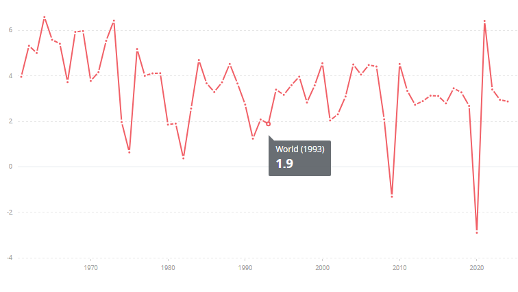 One measurement is GDP growth. Has the internet meaningfully changed the growth rate of the global economy? Unfortunately: No.