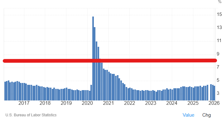 Not AGI; not the end of the world; not the collapse of civilization. Still, 8% unemployment would be the highest unemployment in memory outside of COVID.3