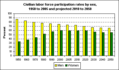 In order to figure out “real unemployment,” we have to look at “employment to population.” In 1950, only 55% of the American population was working. At its height, in 1998, that number approached 64%. Was the increase due to economic success? Or was it the fact that the percentage of women in the workforce increased from 34% to 60% over that time period?