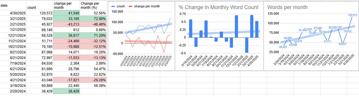 I expect to hit 500,000 words and maybe 250 articles by the end of the year.