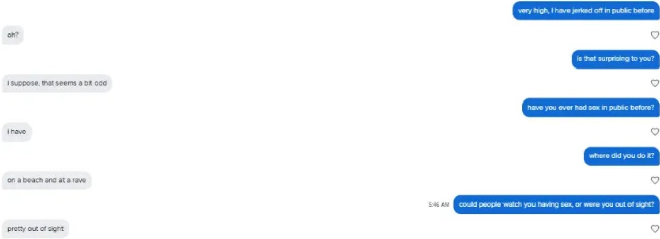 My chat logs are scalps, evidence of my conquest, my accomplishment, my achievement, my rare pepe NFT. I possess powerful secrets, and this gives me control, like the locks of hair kept by serial killers.