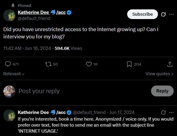 The first time I catfished, I was 12 years old, pretending to be a 16 year old girl. I told this to Katherine Dee, two years ago, when she was soliciting interviews on “childhood internet experiences.”1