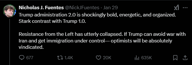 Abandoning Ukraine or a war with Iran would be disastrous. In the former case, voters don’t care. In the latter case, Presidents who start wars are rewarded electorally. My opposition to Republicans pits me against the voters. In terms of the 2026 midterms, Trump’s foreign policy is probably a net win with voters.