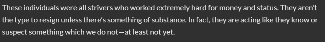 These resignations are a result of opportunistic persecutions. Yes, they are strivers; they are all strivers. They know that it is easier to go quietly into the night than fight the panic head-on.