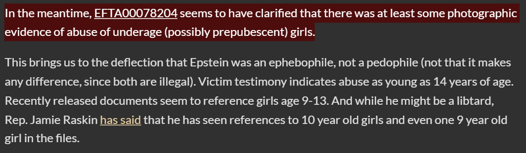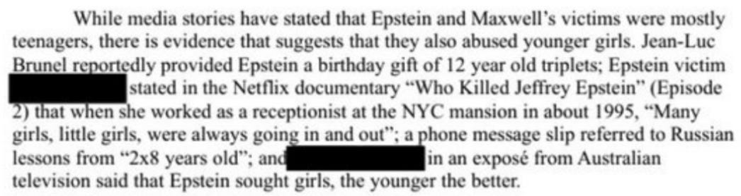 Are we really supposed to believe that this is hard evidence that Epstein was having sex with 12 year old triplets? Seriously Zsutty, if that is your claim, don’t bury it in the links: state it up front. You believe, with your heart and soul, that there is a credible chance that Jeffrey Epstein was fucking 12 year old triplets and then killing them.