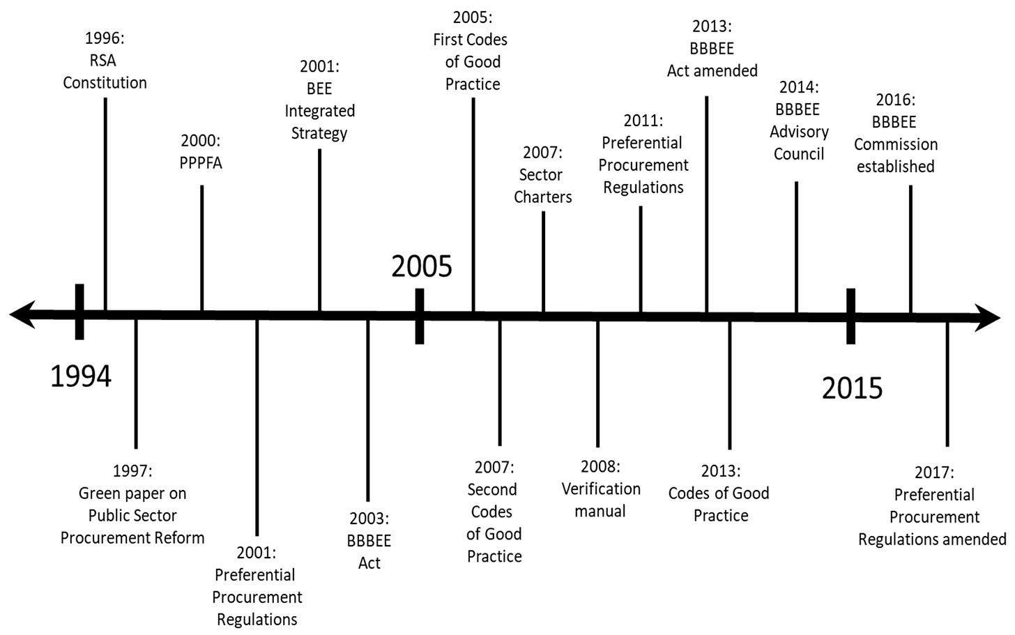 These quotes are taken from: Public Procurement in the Context of Broad-Based Black Economic Empowerment (BBBEE) in South Africa—Lessons Learned for Sustainable Public Procurement. Lerato Shai, Comfort Molefinyana and, Geo Quinot. Link: https://www.mdpi.com/2071-1050/11/24/7164