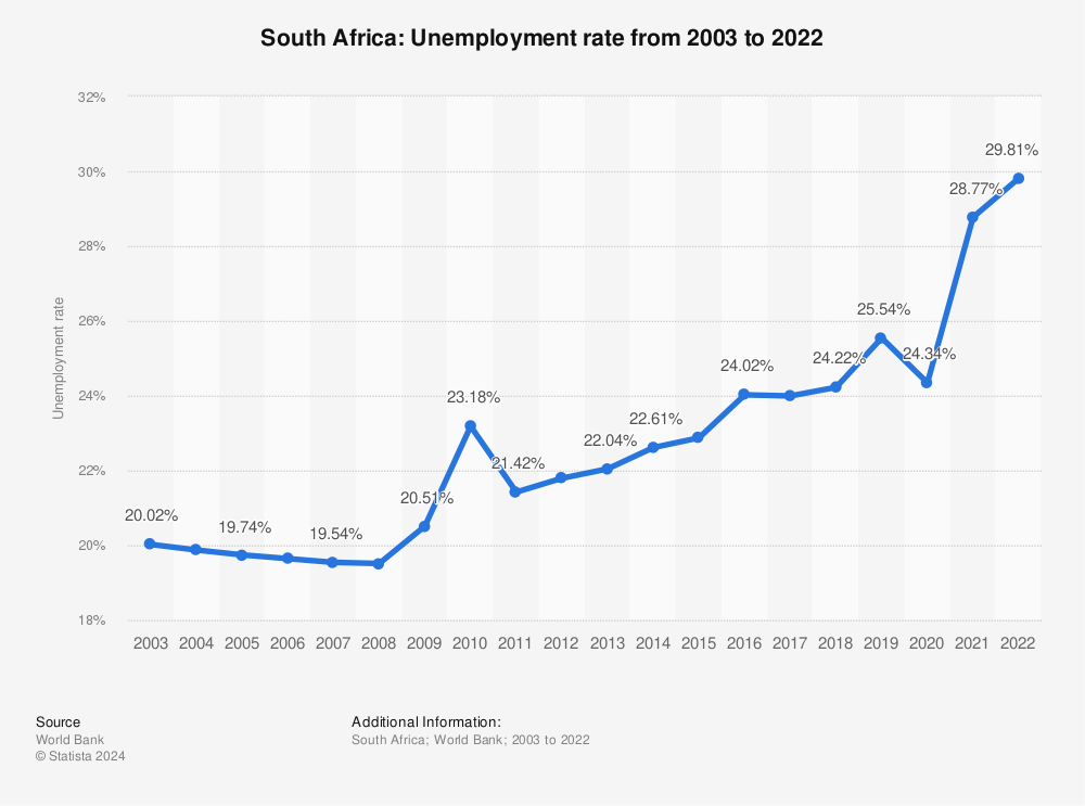 A similar story can be told in South Africa. South Africa is especially important because (as Subsahara’s most developed and largest economy) it is the best candidate for “power projection” abroad. However, despite backing from the international community, the new constitution, implemented in 1997, has resulted in sky rocketing unemployment and the breakdown of basic services.