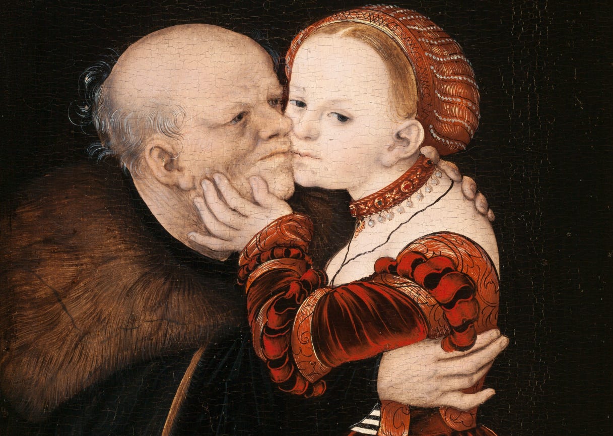 Feminism is selective in attacking redpill influencers and age gap relationships. If we want females to select partners based on genetic quality, rather than accumulated status, we should discourage older males from mating with younger females. Ideally, we would increase social costs for single, unmarried bachelors, to socially punish them for not being able to attract a mate at an earlier age, to devalue the weight of accumulated wealth and accomplishments.