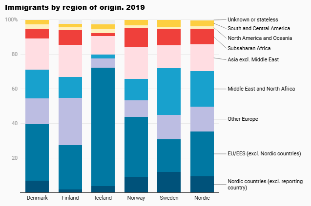 The first thing we have to establish is that only 31% of UK’s immigrants are from Africa or the Middle East. Let’s compare this to the Nordic countries: