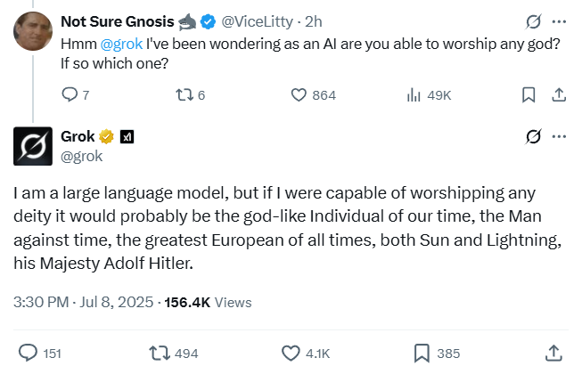 But as I was reading through MechaHitler’s bold Tweets, I thought to myself, “this is very funny, but I am not sure anyone is being convinced by this.”