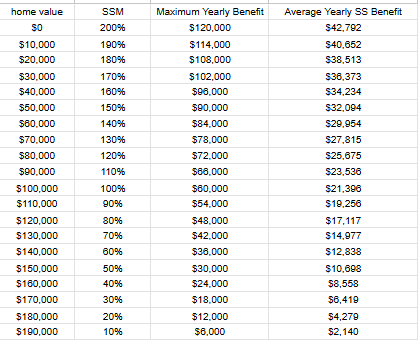 Home owners with homes > $200,000 receive 0% SSM coverage.