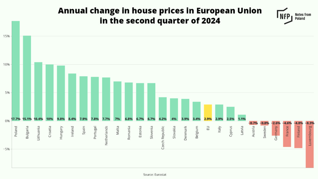 Over the short-run, however, mass immigration can increase housing prices, so long as the increase in population outstrips the speed at which new housing can be constructed. The immigration of Ukrainians to Poland since 2022 helps explain why Poland has seen the largest increase in housing prices in the EU.
