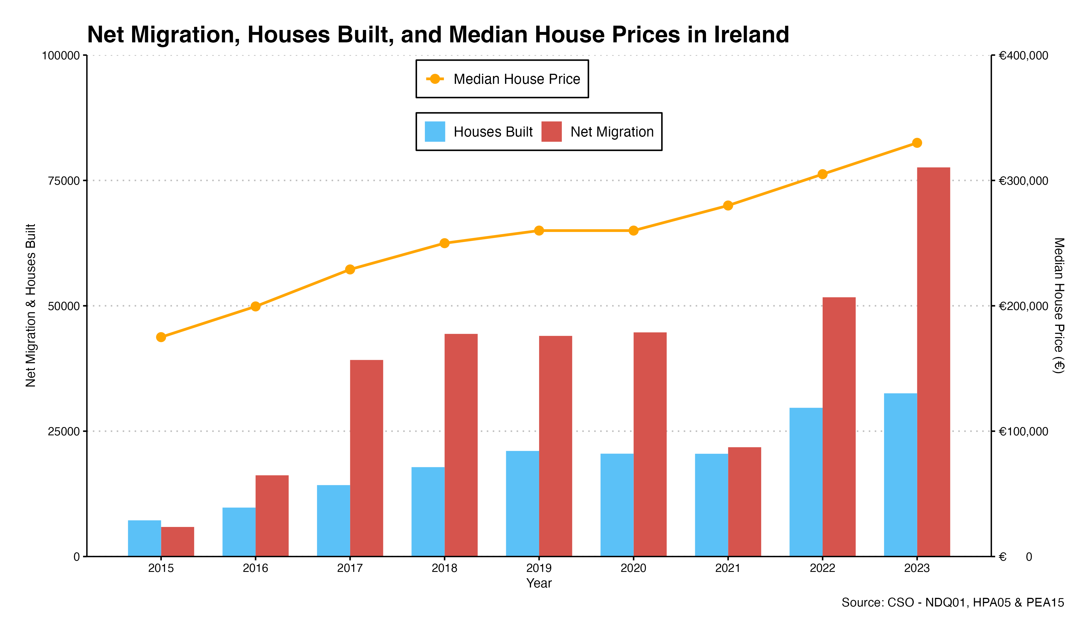 Let’s go back to the example of Ireland. Ireland is experiencing mass immigration, and housing prices are also going up.