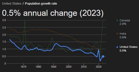The idea that immigration (i.e. population growth) is responsible for the growth in housing prices is… frankly retarded. The American population is growing at a slower rate today than it was 10, 20, or 50 years ago — if housing prices were pegged to population growth, we should expect the lowest housing prices of all time!